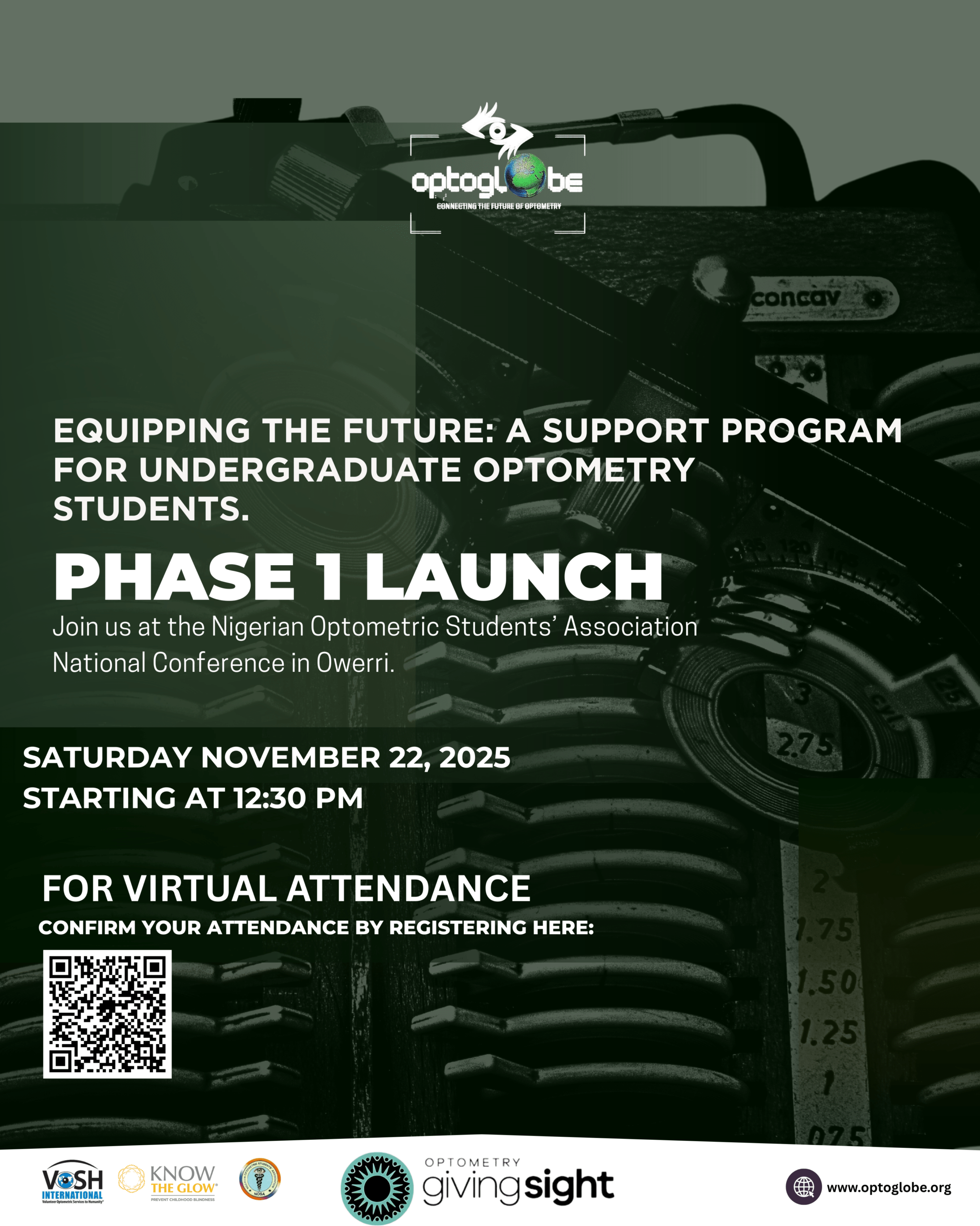 Every optometry student, regardless of country or financial barriers, has access to the basic clinical instruments needed to train effectively and deliver quality eye care. - Phase Overview: Phase 1 (November 2025–September 2026) Data collection and student engagement across 10+ countries.